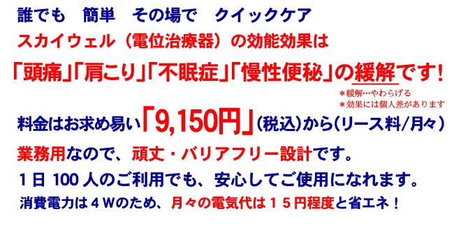 スカイウェル導入による「健康増進・疲労改善」をお奨め致します。